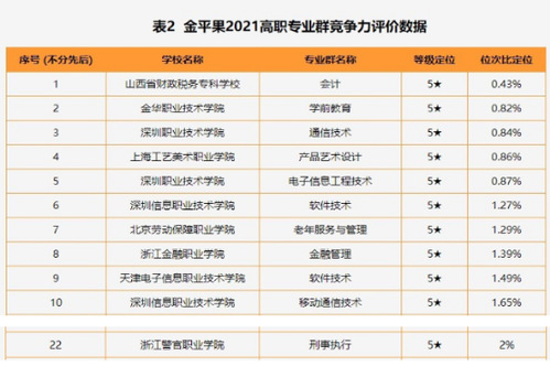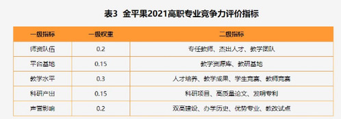 “金平果排行榜”(又稱“中評榜”)由杭州電子科技大學中國科教評價研究院、浙江高等教育研究院、高教強省發展戰略與評價研究中心、武漢大學中國科學評價研究中心聯合中國科教評價網等機構聯合研發,是業界眼中反映我國高職院校辦學情況最權威、最全面、最專業的榜單之一。
