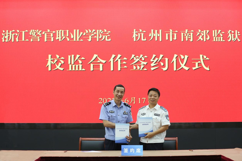 6月17日,學院與杭州市東郊監獄、南郊監獄、西郊監獄和北郊監獄召開校監合作會議,并與四家單位分别簽訂了合作協議。會前,省司法廳黨委委員、院黨委書記顧金法,院黨委委員、政治部主任杜風雷會見了監獄單位領導。
